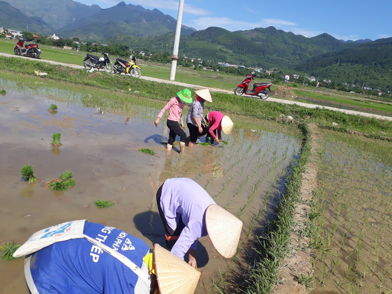 - Nhổ cỏ, phát bờ cho đồng ruộng