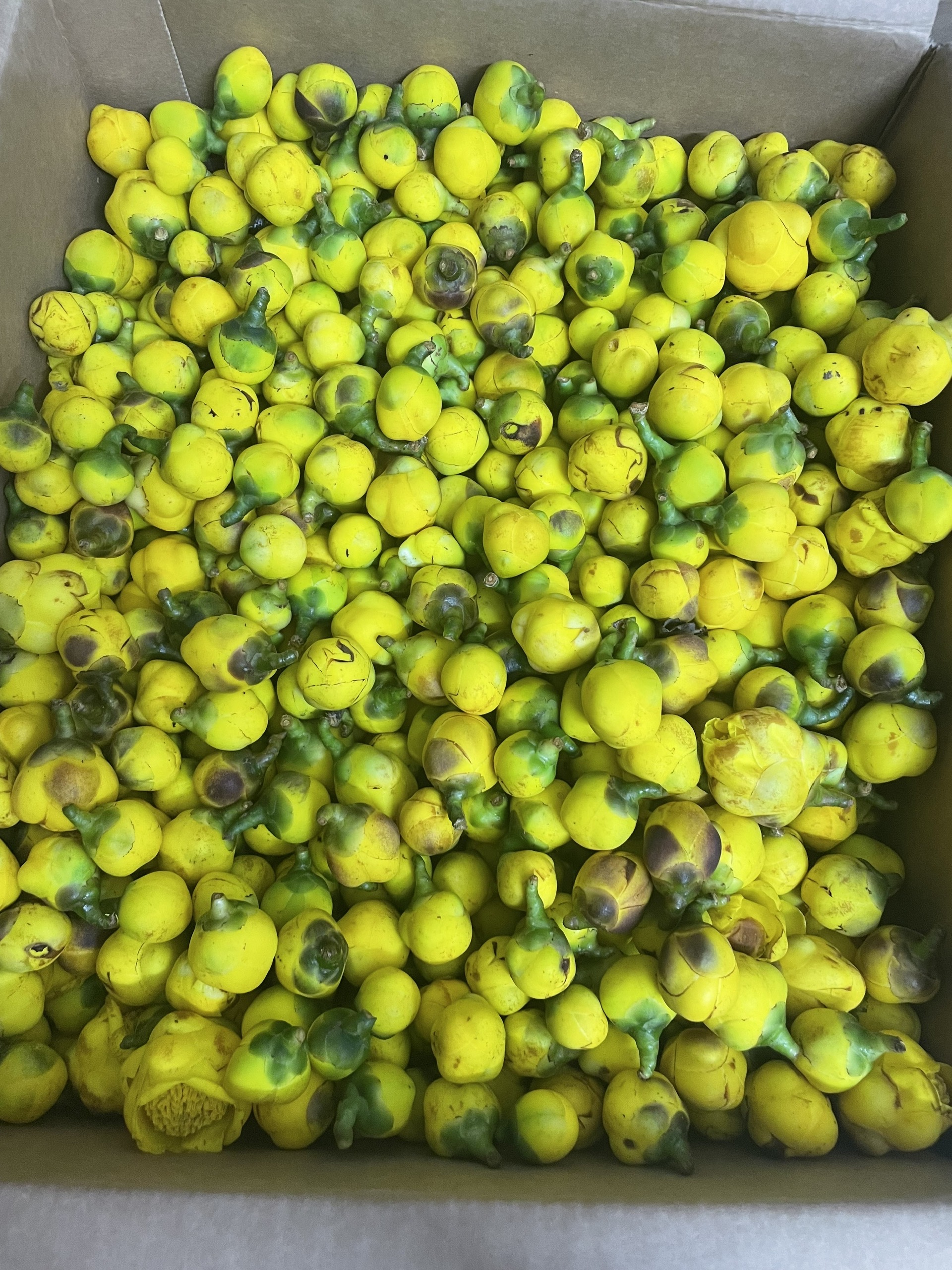 | 11-01-2025 12:01:00 | Thu hoạch | Tiến hành thu hoạch hoa Trà Hoa Vàng. Thu hoạch hoa để chế biến và sử dụng Trà Hoa Vàng chủ yếu là thu hái ở giai đoạn nụ, cần phải chú ý hái đúng thời điểm nụ trà phát triển đạt kích thước lớn nhất, tức là hoa phải đạt độ "chín" nhưng phải đảm bảo hoa trà chưa bung nở, vẫn giữ nguyên được đài hoa nhằm đảm bảo được hàm lượng hoạt chất trong hoa là lớn nhất mang lại giá trị cao nhất. Sử dụng phương pháp thu hoạch thủ công bằng tay. Tổng khối lượng thu hoạch ngày 11/01/2025 là 6kg hoa tươi. Sau khi thu về được đựng trong thùng carton để hoa không bị bí hơi, mất màu và được sấy thăng hoa để bảo quản. Tại thời điểm trước và sau khu thu hoạch thời tiết thuận lợi, có nắng nhẹ, khô ráo, độ ẩm thấp 41%, nhiệt độ 9 - 20 độ. | Hoàn thành | |