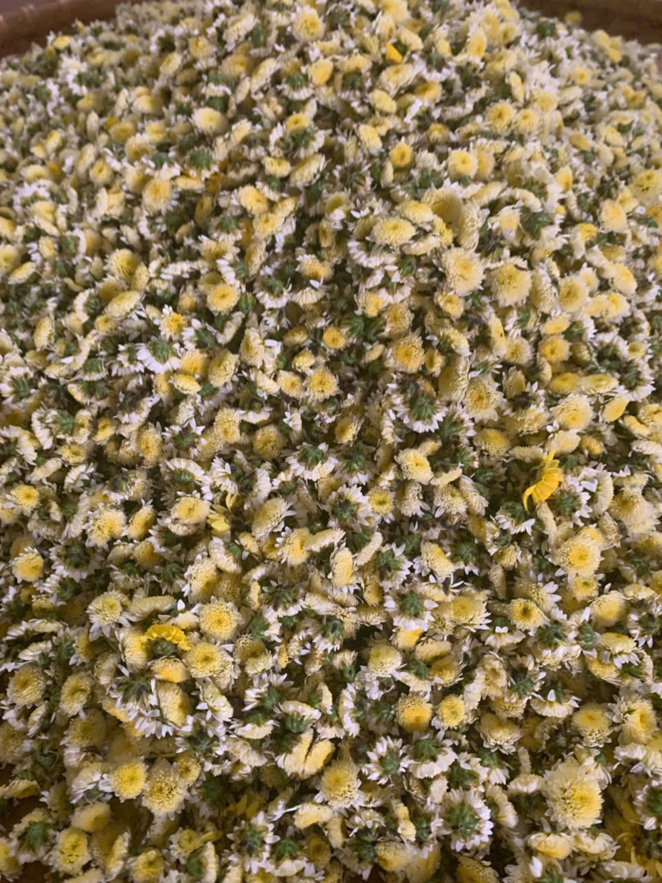 | 07-12-2025 12:12:00 | Phơi sấy công nghiệp | Hoa cúc sau khi hái, được phơi ráo rồi đem sấy trong lò sấy để đảm bảo được màu sắc, hương vị, và dược tính nguyên vẹn. | Hoàn thành | |